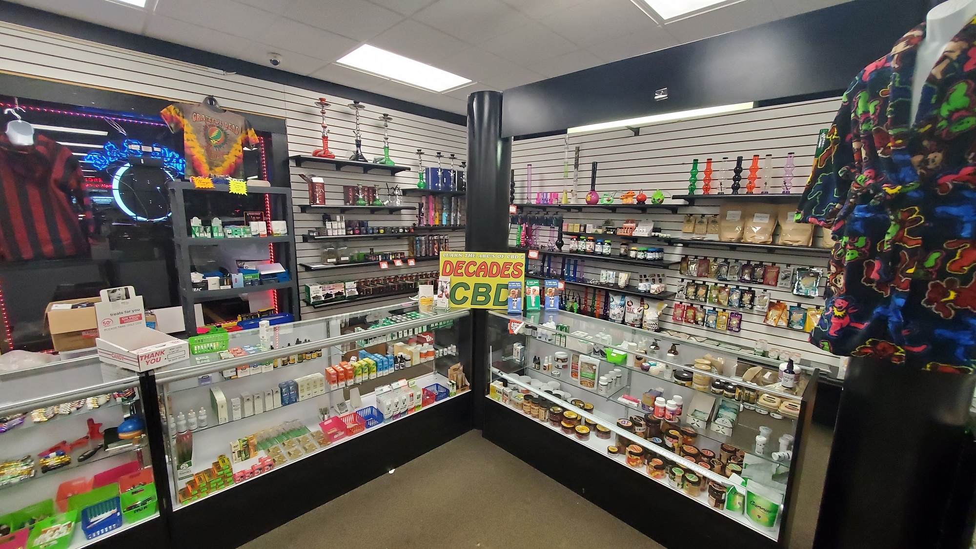 Decades Psychedelic Daze has 4 convenient locations with over 13,000 sqft groovy goodies for your shopping needs. Whether you are looking for Pipes, Rigs, CBD, KRATOM, DELTA 8, Tye Dyes, Candles, Vaporizes, Scales, Grinders, Stickers or other memorabilia, we have what you need all at great prices.